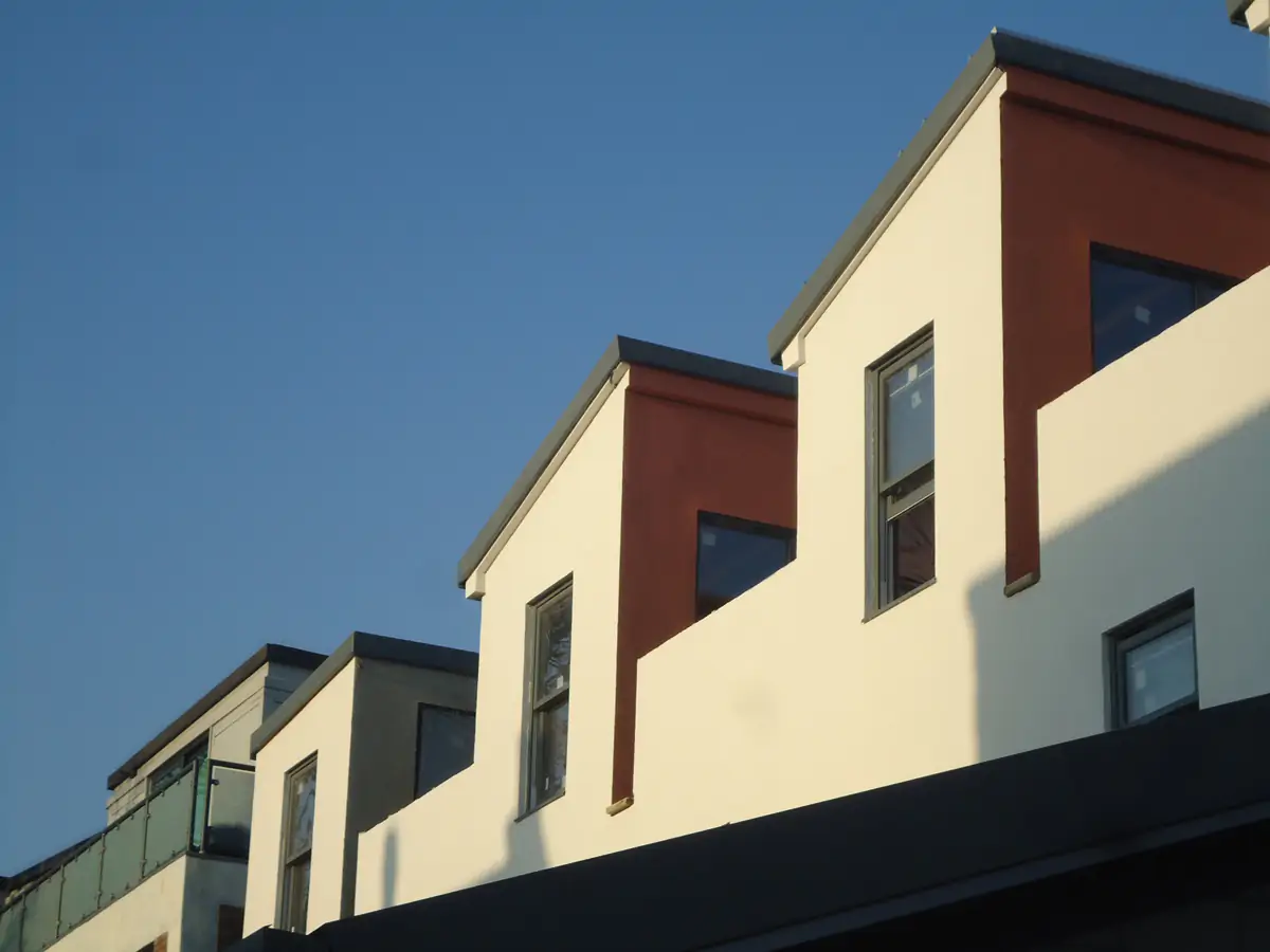 We designed this housing development in a tightly planned gated courtyard in the middle of Fulham, London with bespoke prefabricated timber frames. Each property enjoys underfloor heating on all levels, wine stores, four bedrooms, air source heat pumps, solar panels and grey water recycling for the WCs. Each house also has its own private roof terrace accessed from the open plan living and dining room on the top floor.