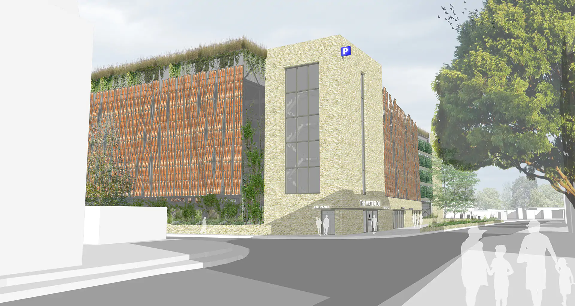 The plans for this new town-centre multi-storey car park in the Roman, Cotswold town of Cirencester, were selected in competition by the Cotswold District Council, Publica Group and Willmott Dixon. Designed as a sustainable envelope, the façade proposal is a bespoke aluminium woven panel combined with Cotswold stone and living walls.